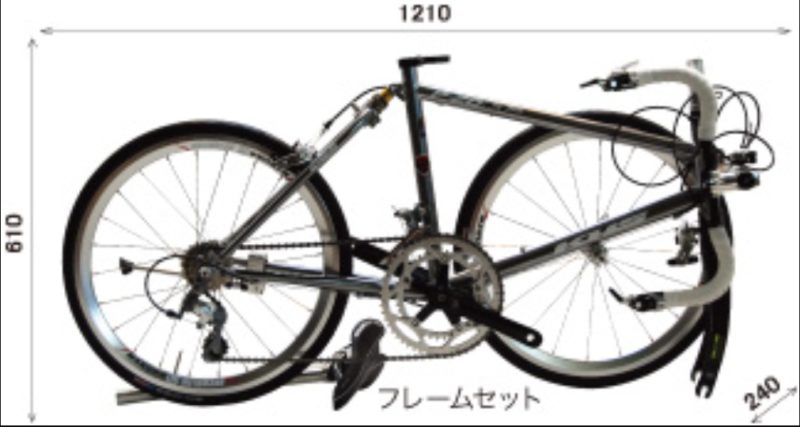このバイクは20インチホイールを履いているためそれほど小さくならなく輪行には不向きだと思っていたのですが、それが間違いだと気づきました。