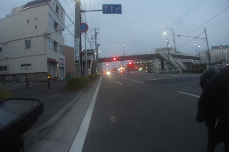 海岸線に出るころには明るくなりましたが、こんな時間なのになぜか自動車数多めでした。
