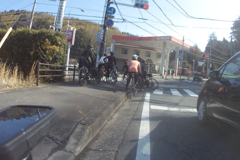 中間点くらいまで上ったところでロードバイクの集団に追いつきました。