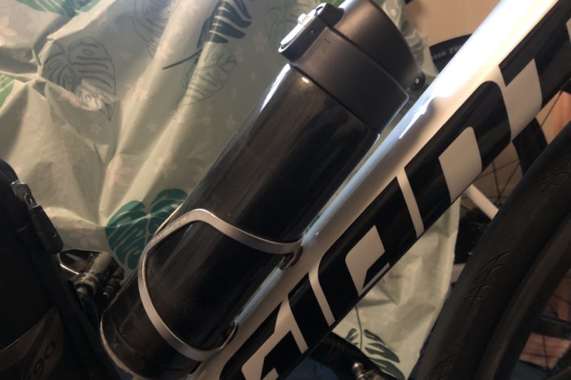 走行しているうちに振動でボトルが回転してレバー部分がフレームと干渉しています。