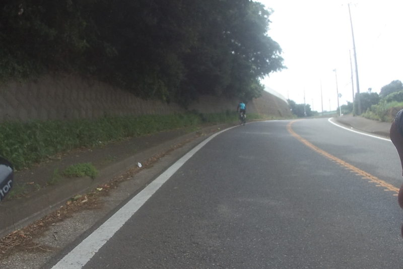 長い上り坂で久々にロード乗りに出会いました。